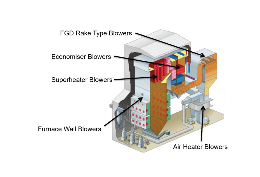 Sootblowing is the principal means of controlling fireside deposits on heat transfer surfaces in order to provide a more efficient steam generation cycle.
